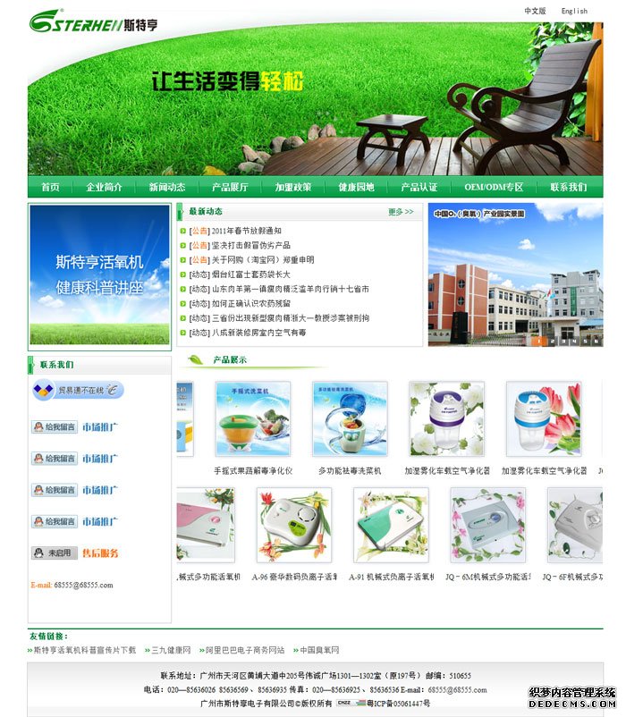 通过与美国波斯特公司进行技术合作,专业从事研制及销售高科技新型健康类环保产品。主要生产O2、O3高压模块,“小神泡”多功能活氧机,“小蝙蝠”吸蚊机等尖端科技产品,本着不断开拓进取的精神,公司特聘由海内外专家、学者组成技术顾问团,紧跟国际先进技术,在国内一直保持超前领先位置,并已申请了多项专利。科技创新,服务社会!籍着优秀的品质,企业与产品普遍被市场接受,深得用户信赖。