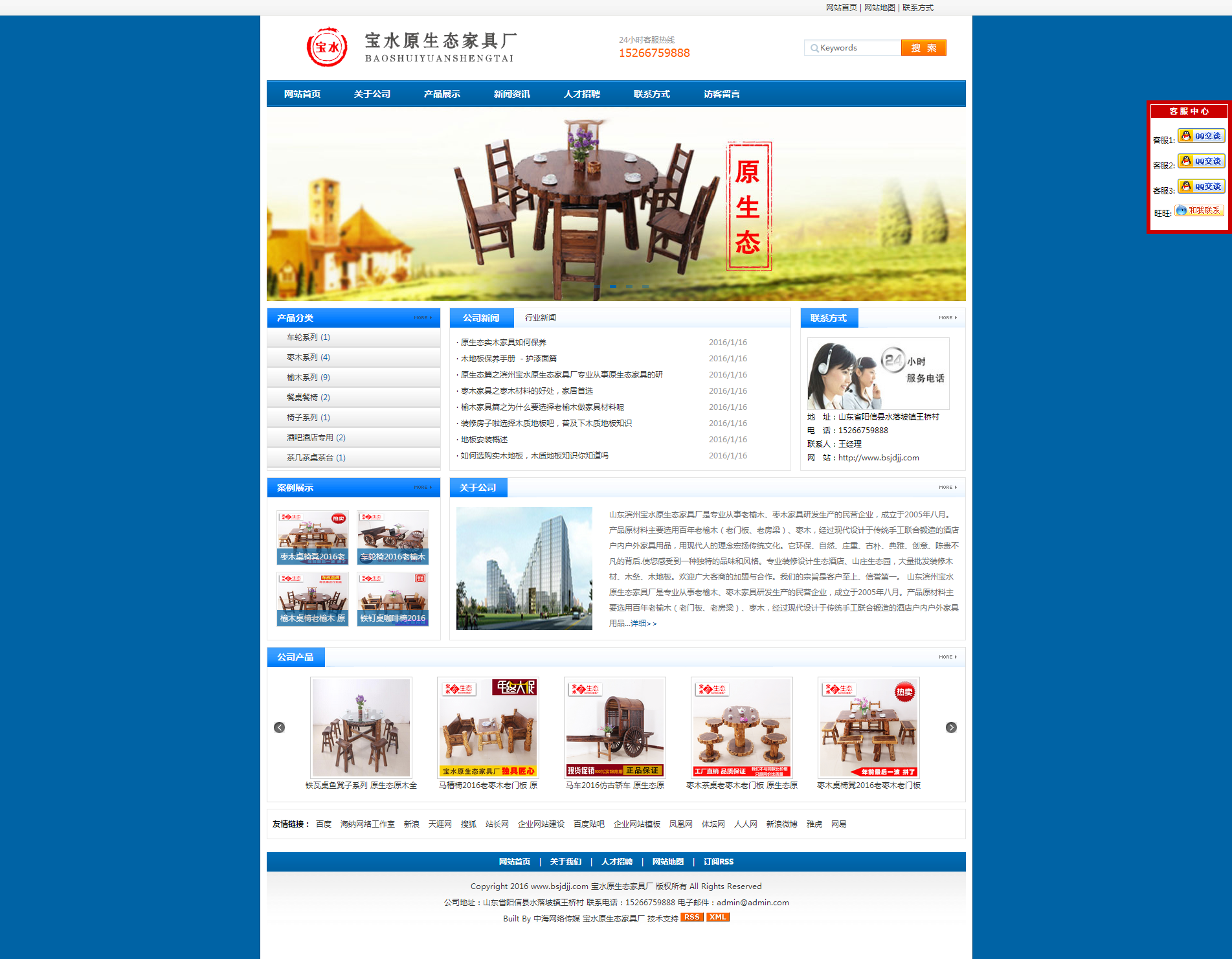 山东滨州宝水原生态家具厂是专业从事老榆木、枣木家具研发生产的民营企业,成立于2005年八月。产品原材料主要选用百年老榆木(老门板、老房梁)、枣木,经过现代设计于传统手工联合锻造的酒店户内户外家具用品,用现代人的理念宏扬传统文化。它环保、自然、庄重、古朴、典雅、创意、陈贵不凡的背后.使您感受到一种独特的品味和风格。专业装修设计生态酒店、山庄生态园,大量批发装修木材、木条、木地板。欢迎广大客商的加盟与合作。我们的宗旨是客户至上、信誉第一。