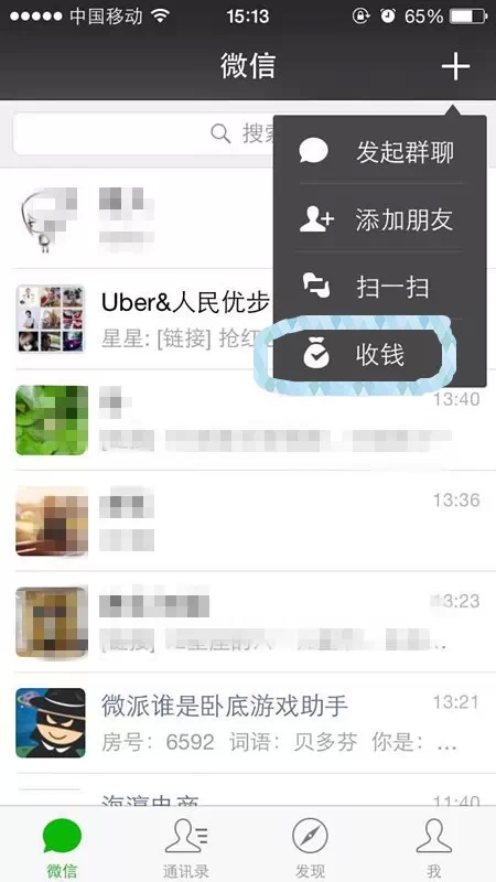 2、将二维码“收钱”功能提到首页的+处,就像是一个pos机让微信收款更方便。